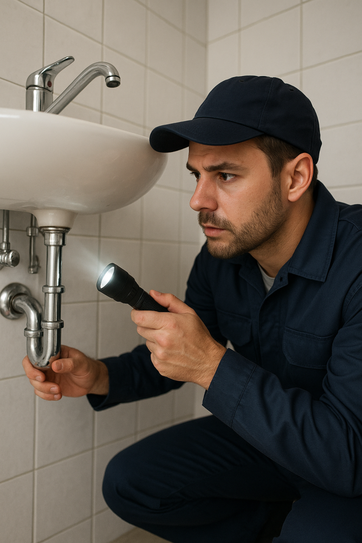 Un plombier ADS Sanitaire 95 détecte une fuite d’eau dans une maison, établit un rapport précis joint à la facture. Intervention réalisée dans le Val-d’Oise et les Yvelines.